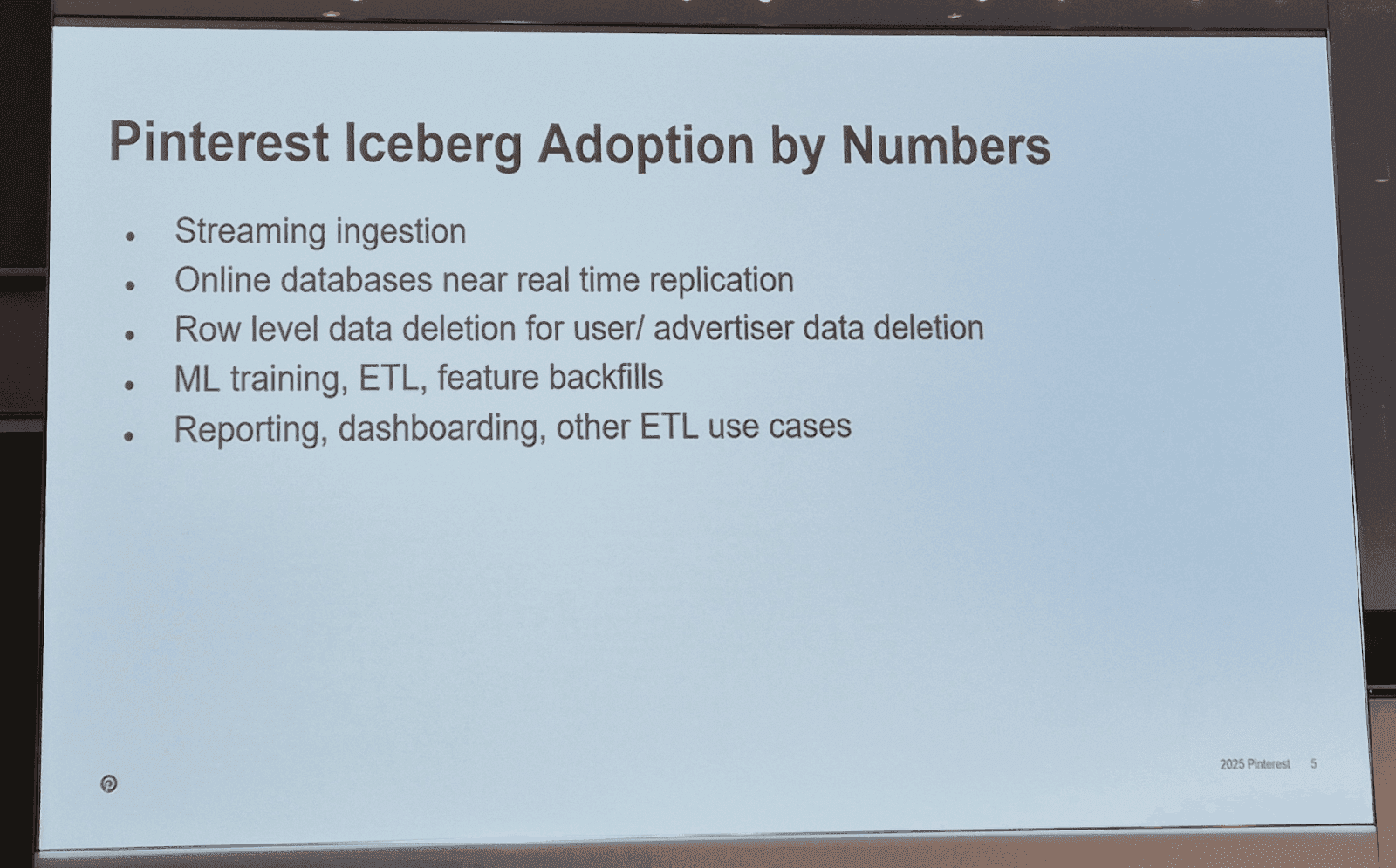 We attended seven user presentations at the 2025 Iceberg Summit and summarized our takeaways, so you don't have to. We summarized the talks from Airbnb, Bloomberg, Pinterest, Wise, Autodesk, Mediaset (Bauplan), and Slack.
