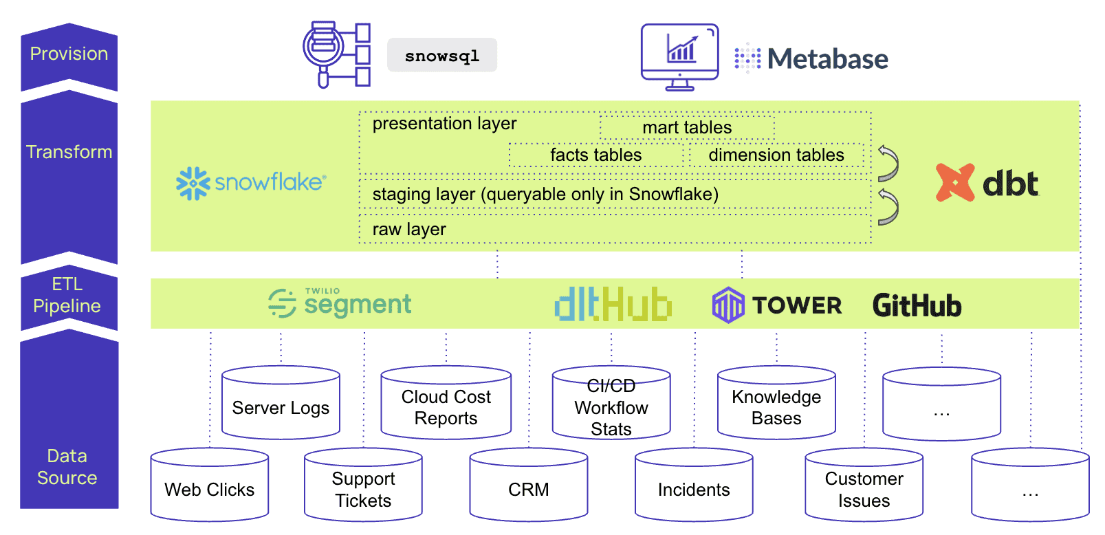 Taktile is the leading decision intelligence platform for FinTechs around the world. Taktile’s data team operates a Snowflake data warehouse and onboards data from a large number of data sources including clickstreams, server logs, cloud cost reports, CRM data, internal knowledge bases, customer support tickets etc. To onboard an ever increasing number of data sources they chose to implement new pipelines using the dlt library from dltHub. Dlt provides a wide range of supported sources and sinks, schema detection, incremental and full loads and many other features. A unique feature of dlt is that it’s an in-process Python library that can be embedded into any Python data application. Taktile has already built 10+ of these dlt-based pipelines, orchestrated by and executed on Github Actions.