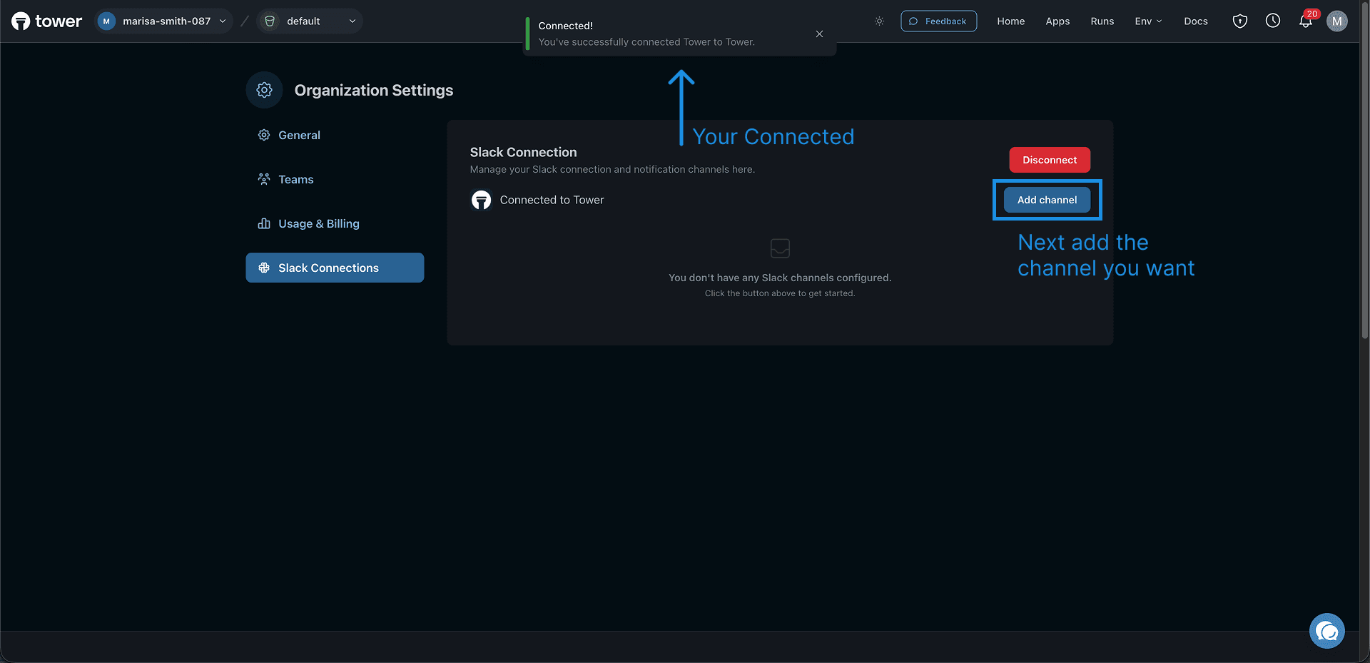 How to connect Slack and Tower